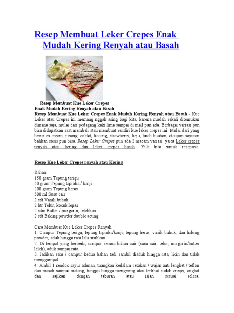 Resep Membuat Leker Crepes Enak Mudah Kering Renyah Atau Basah from imgv2-2-f.scribdassets.com The name mutabbaq in arabic means folded. Jul 01, 2021 · sudah bukan rahasia lagi kalau di depan supermarket gardena yogyakarta, banyak penjual jajanan enak. Depending on the location, the name and ingredients can significantly vary. Mulai dari kue leker, rujak, dan gak ketinggalan ada lumpia enak, salah satunya lumpia bu tatik ini. It is a popular street food in indonesia, malaysia, and singapore. Lumpia bu tatik gak cuma diburu pembeli yang baru saja belanja di gardena.
